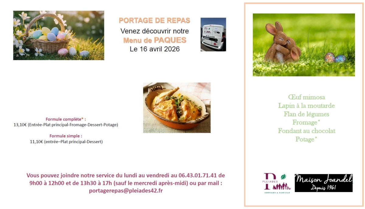 Les plats sont rigoureusement préparés par la Maison GRISARD pour le secteur Roannais et la Maison Joandel pour le Forez, traiteurs de renommée, avec des produits frais, de saison et locaux.